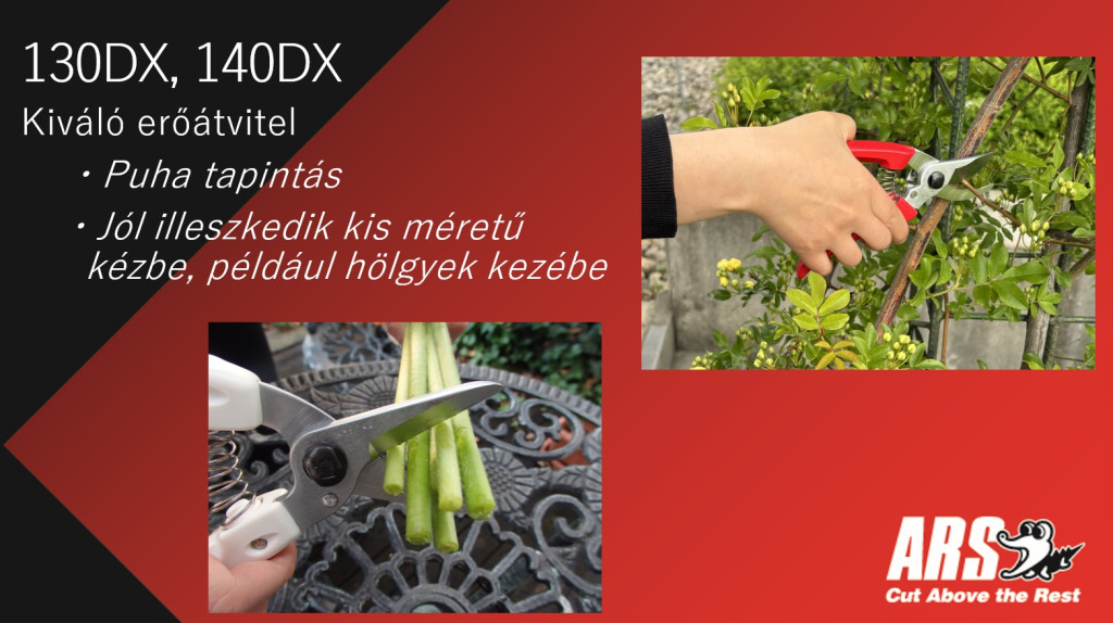 Ideal for rose care, fruit-tree pruning, hedge shaping, and ornamental plant detailing, the ARS 130DX P is a solid choice for both hobbyists and semi-professionals.