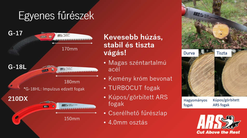 A kúposra köszörült fűrészlapok a vágóélnél vastagabbak, a penge hátoldala felé pedig vékonyodnak, így jelentősen csökken a súrlódási ellenállás. Ez a kialakítás rendkívül tiszta vágási felületet és minimális erőkifejtést tesz lehetővé. Ideális professzionális metszéshez, ahol a maximális precizitás és a sima vágás elengedhetetlen.