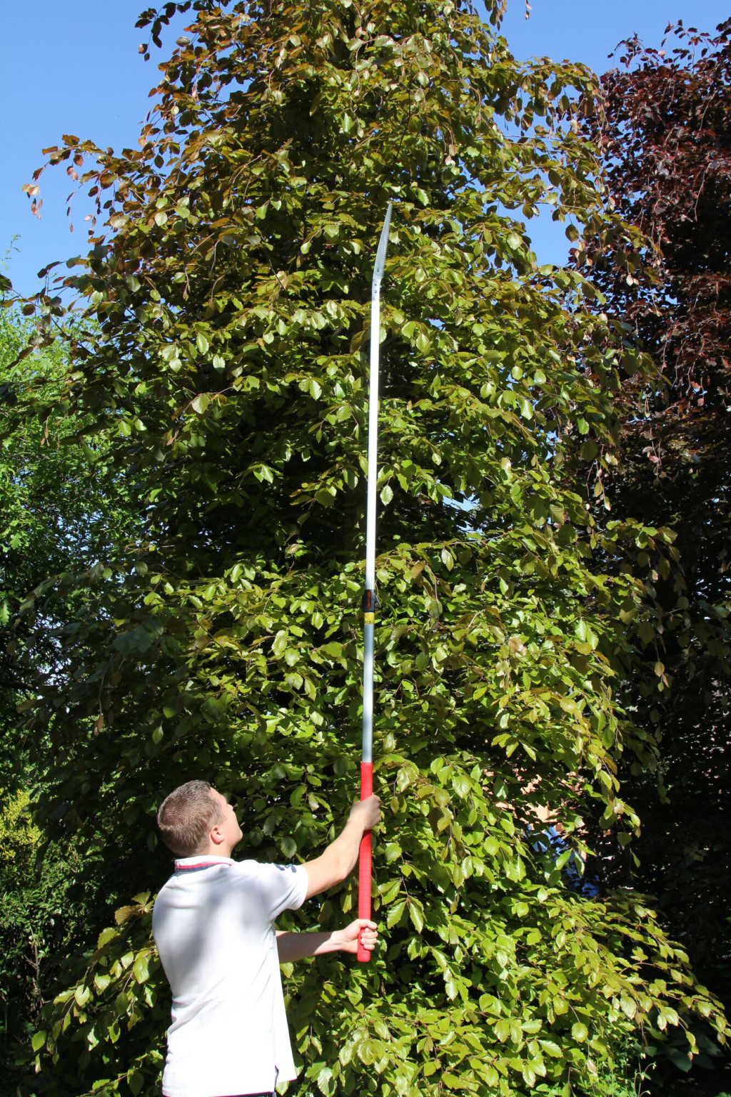 Extendable professional telescopic pole saw, equipped TurboCut saw. The telescopic pole made of a light weight, aluminium, is provided with a comfortable, non-slip grip. Very strong / stable by its design. The saw blade is made from a hard, chrome plated metal. Is extra tough, rust-resistant and easy to maintain. Blade length 300 mm.