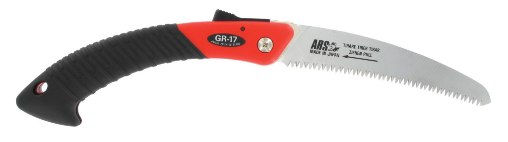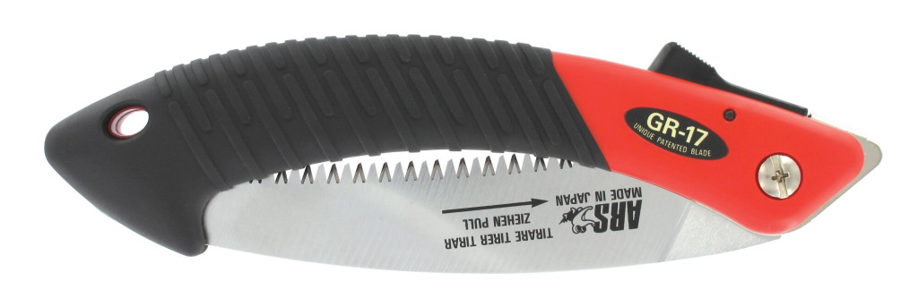 Folding pruning saw for professional use. The saw has a pointed tapered, slightly curved saw blade and is provided with a unique patented saw blade of 170 mm. Fast and easy saw requires less effort with this sharp teeth and the way they are placed. The blade is made of hardened chrome steel, making it extra strong, corrosion resistant and easy to maintain. With a plastic non-slip grip, and a safety lock.